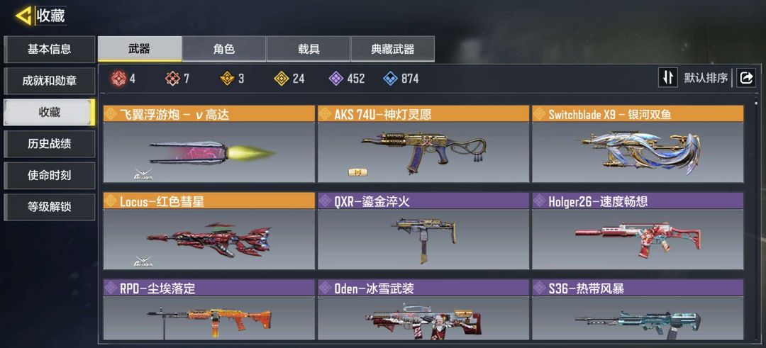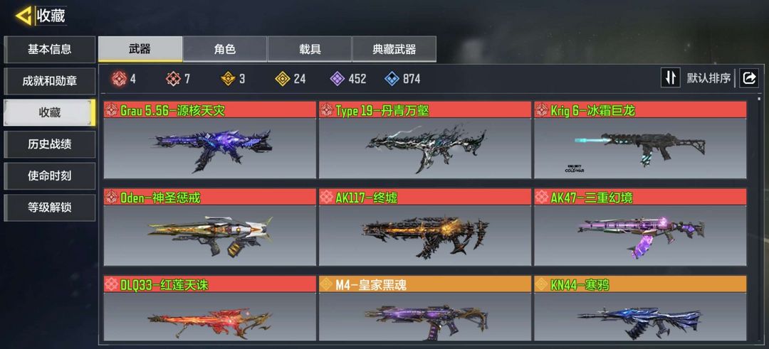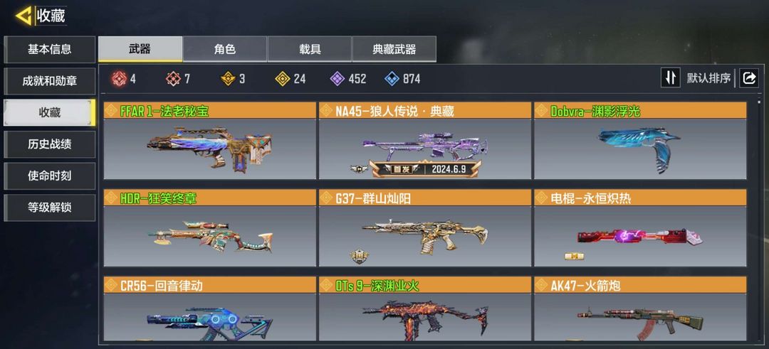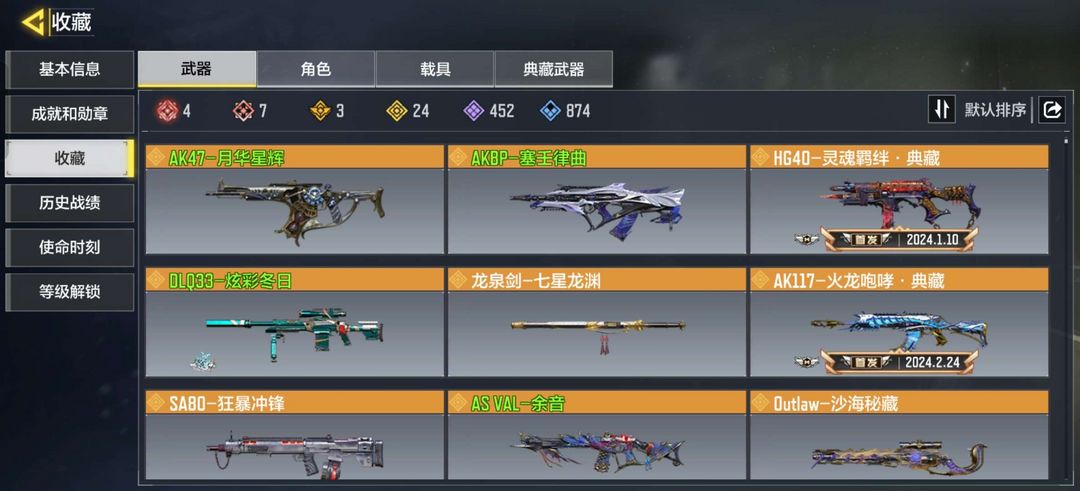 7神话武器4满级,1满级神话角色,24传说武器