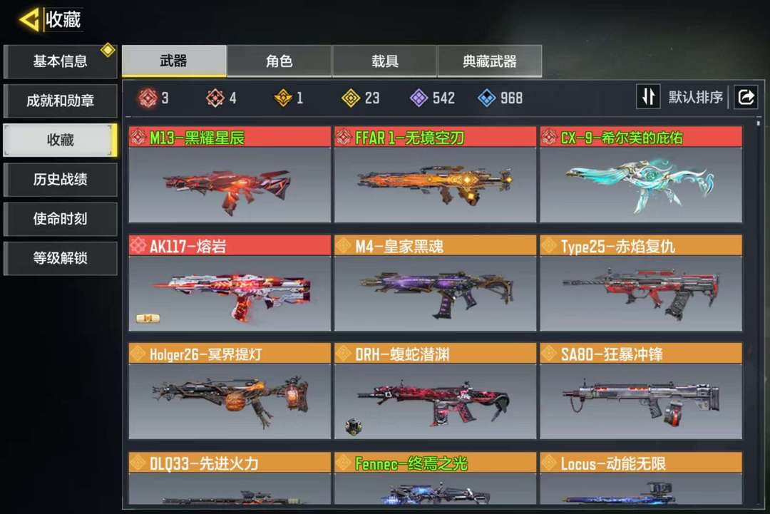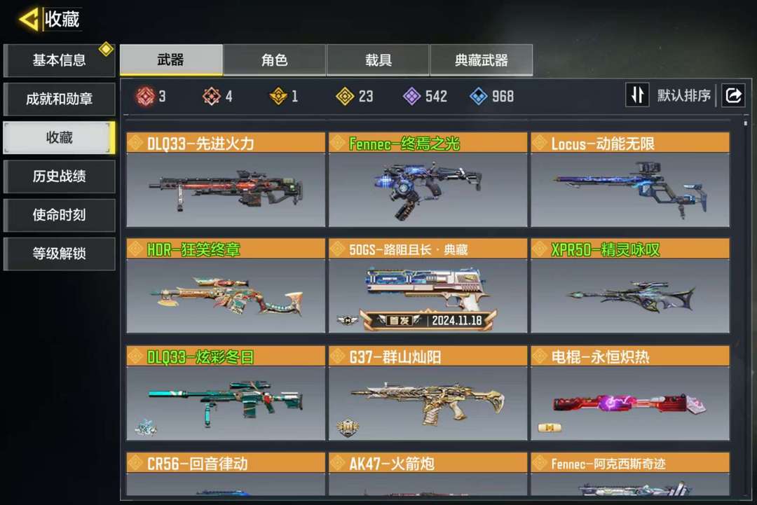 装备描述:四神话三满级,送的那个神话没升 有动能无限,先进火力,猫猫狙,圣诞狙 零神话零传说角色